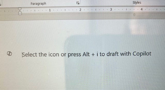 That is, until this morning, when I opened a new document in Word and found myself confronted by a jarring and perplexing sentence: “Select the icon or press Alt + I to draft with Copilot.” The message was accompanied by a weird little symbol that looked like two old Band-Aids floating on the surface of pond scum.