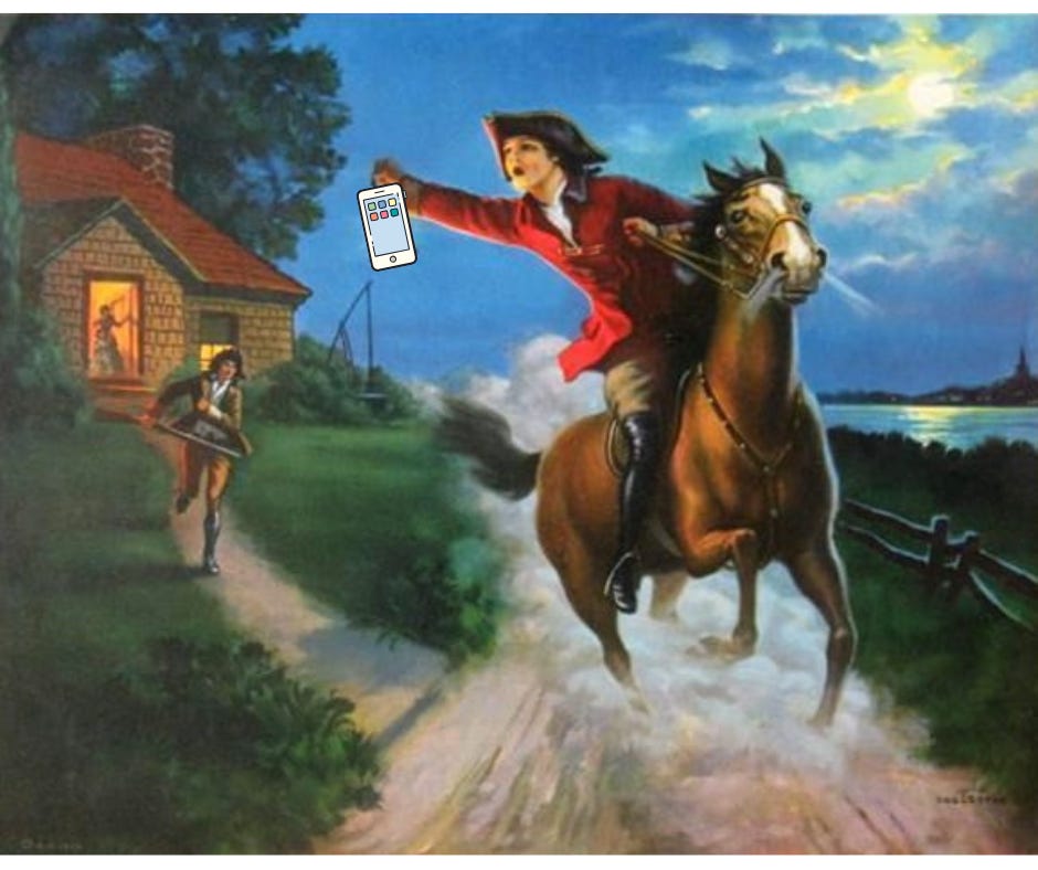 And we’re just going to…let them? Where’s the outrage? Where’s the good ol’ can-do, hands-on, when-the-going-gets-tough-the-tough-get-going American spirit? I have a hard time picturing Patrick Henry shouting: “Give me liberty or give me death! Unless liberty is hard! Then let’s just forget about it! Tyranny is fine!” Or Paul Revere checking his GPS to figure out which way to ride. If they’d had to rely on phone batteries back then, we’d all be playing football with our feet today.